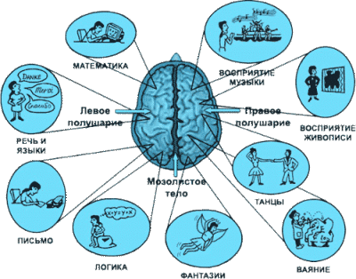 Представляем себе: слева - четкое логическое мышление; справа - мечта, интуиция, вдохновение.